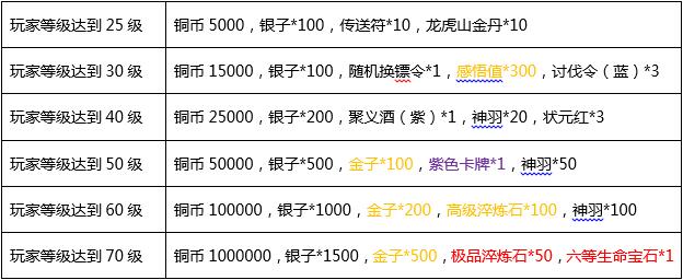活动内容:玩家达到等级即可领取等级礼包,一路成长等级,奖励惊喜连连!